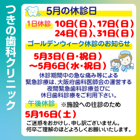大阪市西淀川区出来島にある歯医者「つきの歯科クリニック」では小児から高齢者まで家族全員が通える地域密着のかかりつけの歯科医院をモットーに、可能な限り保険治療の範囲で、お口の健康を回復し、回復した後は悪化させないようにフォローしていく予防体制を整えております。